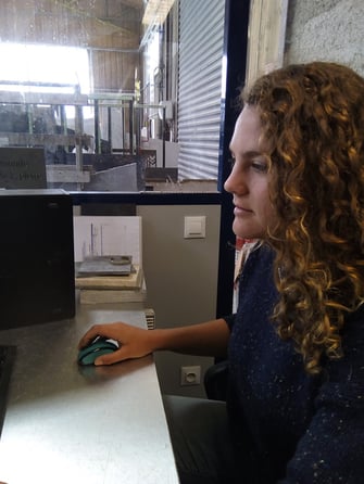 Cette jeune architecte, fraîchement diplômée de l'école de Rennes, vient accroître ses connaissances pratiques au contact de la "matière".