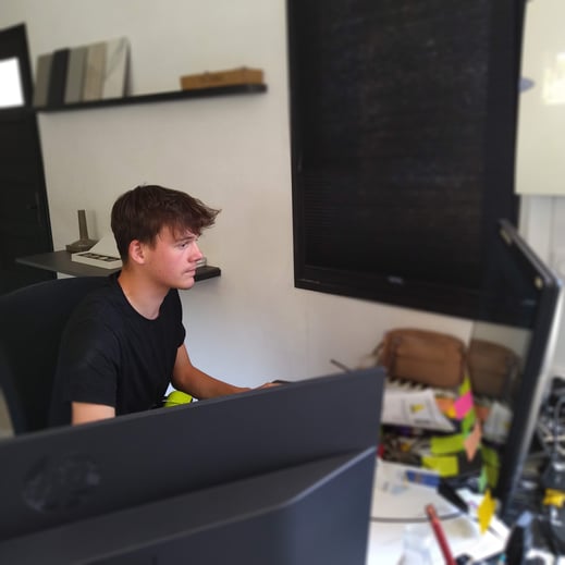 Enzo Oger est aujourd'hui étudiant et va débuter sa deuxième année de BTS "Etudes et réalisation d'agencement", au lycée Schuman-Perret du Havre. Après un premier stage en décembre 2021 dans l'entreprise, il a rejoint notre équipe pour une alternance sur l'année scolaire 2022-2023. Il aura plusieurs missions : création de plans en 3D, programmation de la machine de découpe jet d'eau…