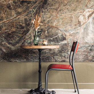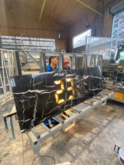 Création d'un élément mural en marbre Deep Forest ép 2 cm - sur mesure