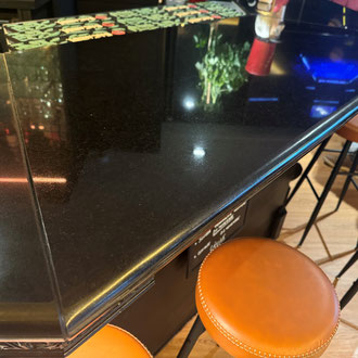 Création d'un élément en granit noir massif poli finition arrondie des bords ép 3 cm - sur mesure