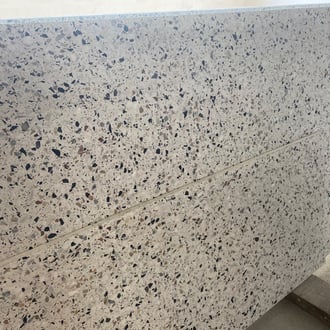 Le terrazzo est une matière très ancienne qui utilise des éclats de pierres. Une façon de "recycler" des chutes de pierre naturelle ou de verre. (> Pour découvrir l'histoire de cette matière qu'est-ce que le terrazzo ?)