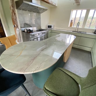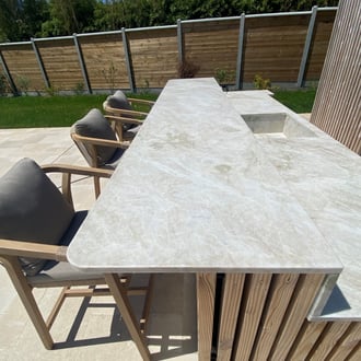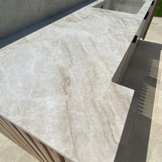 Spécialisée dans les pierres naturelles, notre entreprise réalise de nombreux plans de travail de cuisine. Esthétiques, durables et faciles d'entretien, les plans de travail de cuisine en quartzite clair donnent un aspect unique et noble à votre intérieur.
